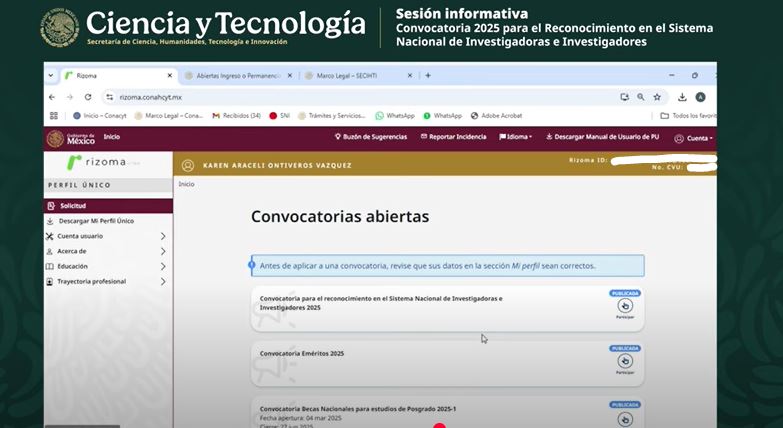 Sesión Informativa – Convocatorias 2025 para el Reconocimiento en el SNII